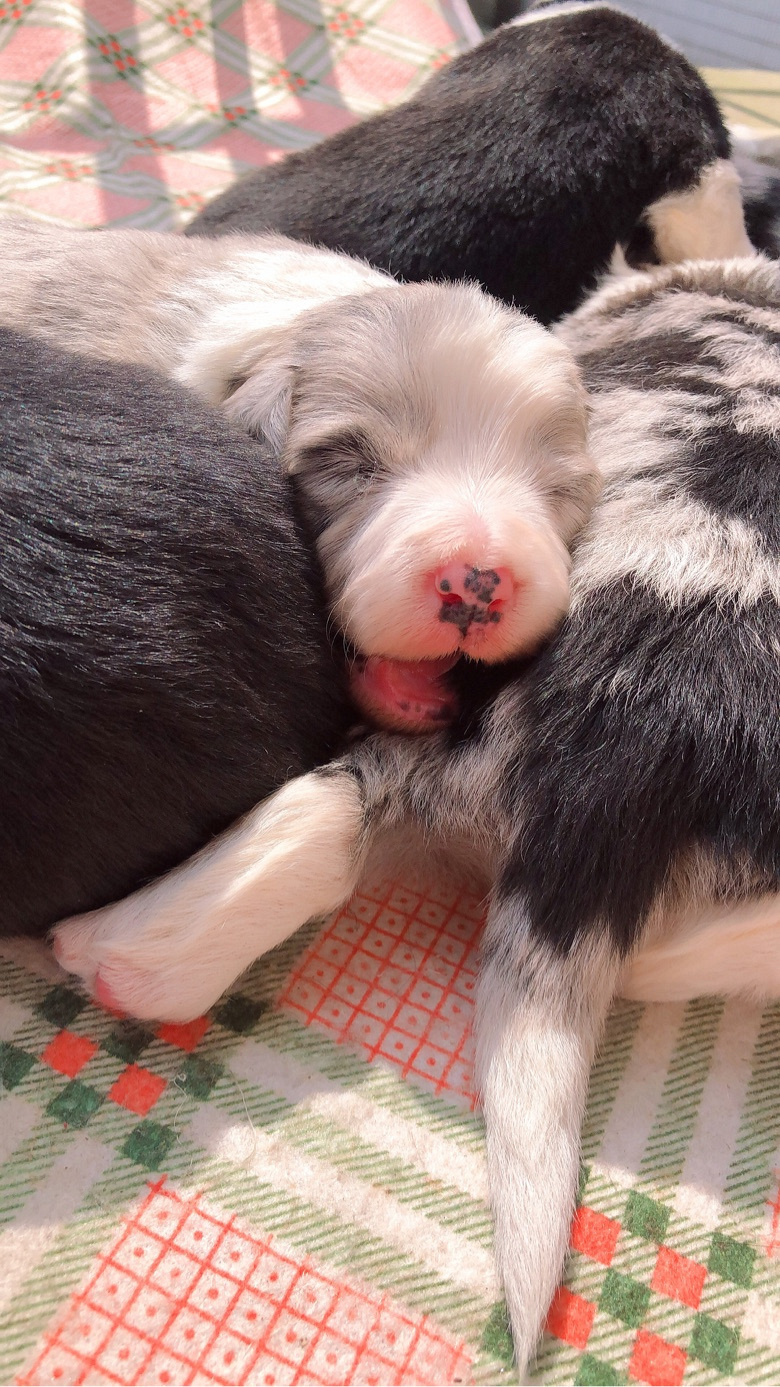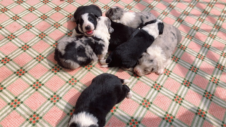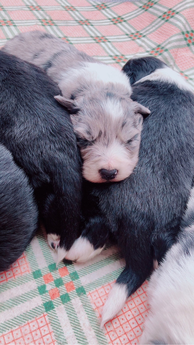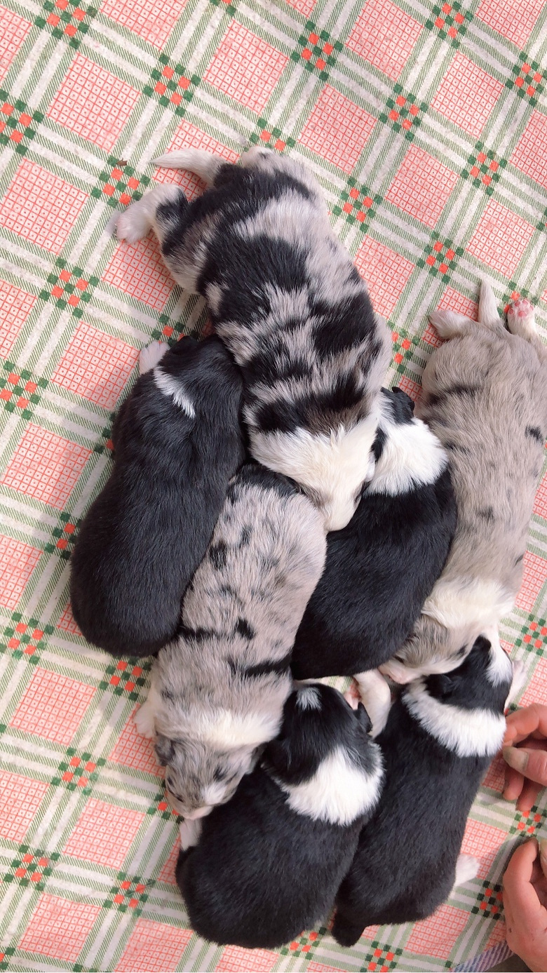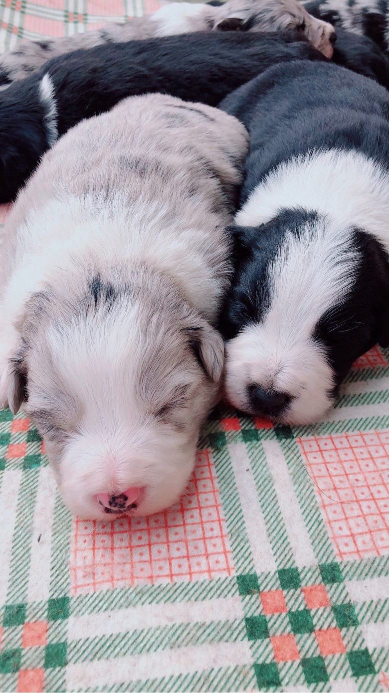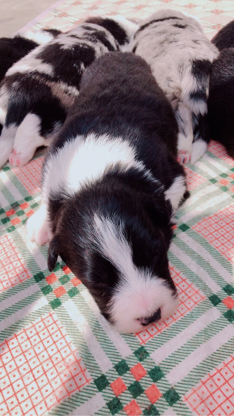 大年初一出生的一窝边牧宝宝,总共七只,三公四母,三只蓝陨四只黑白