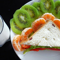 看过几位楼友老是发三明治。。。。搞的我也很蠢蠢欲动。 昨晚去超市,买了吐司,剩菜,方肠,沙拉酱啥的。。。 今天早上也整三明治吃。。。 生菜怕有农药啊,虫子啊啥的,昨晚就泡盐水了。。。 大的番茄不敢买,就用小番茄代替了。 配了一个桔子和一个猕猴桃,还有一杯酸奶。