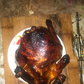 烤鸡来了[呲牙]第一次烤火候没掌握好有些地方烤焦了 但是味道还算不错 叫了好朋友来家里一起吃[调皮]