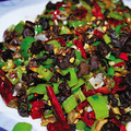原料:熟猪肺300克,水发黑木耳50克,葱白25克,干辣椒丝10克,花椒面15克,姜丝10克,精盐、料酒、白糖、胡椒粉味精、香油各适量,色拉油80克。 制法:1.熟猪肺切成薄片;黑木耳和葱白均切成长细丝。2.净锅上火,放色拉油烧热,投入干辣椒丝炸香捞出,放入猪肺丝和...