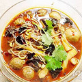 材料虾饺100g、肉丸100g、鱼丸100g、冻豆腐100g、豆芽100g、黑木耳100g、油适量、盐适量、生姜适量、大蒜适量、辣豆瓣两小勺、麻椒适量、辣椒适量做法1. 热锅下油。2. 生姜,大蒜炒香。3. 下麻椒,辣椒炒香,吃得特麻辣可多加放麻椒和辣椒。4. 加上...