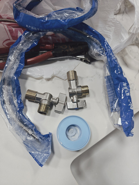 以为买水槽的时候赠送的三角阀不是不锈钢的,里面生锈了,拆下来没有生锈,是不锈钢的,换上球阀,流量会大一点,没有考虑到接口在瓷砖里面,球阀长度不够,拧紧球阀后,六角螺放不进去无法拧,只好换回来三角阀。总水表阀门关不严,还是有水流出来,穿上旧衣裤,躺在地上操作,最后外面的旧衣服都湿了。
