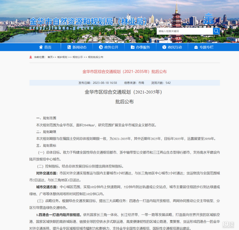 金华市区综合交通规划(2021-2035年)批后公布,金台城际线位变更