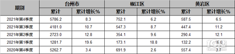 台州第四季度GDP5786,其中椒江752,温岭1257,临海819