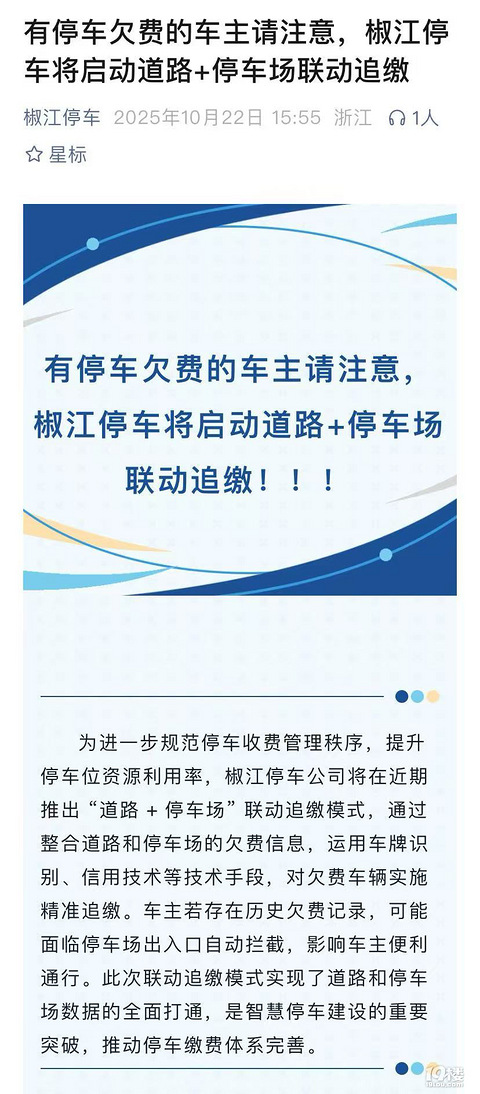 椒江停车将启动道路+停车场联动追缴