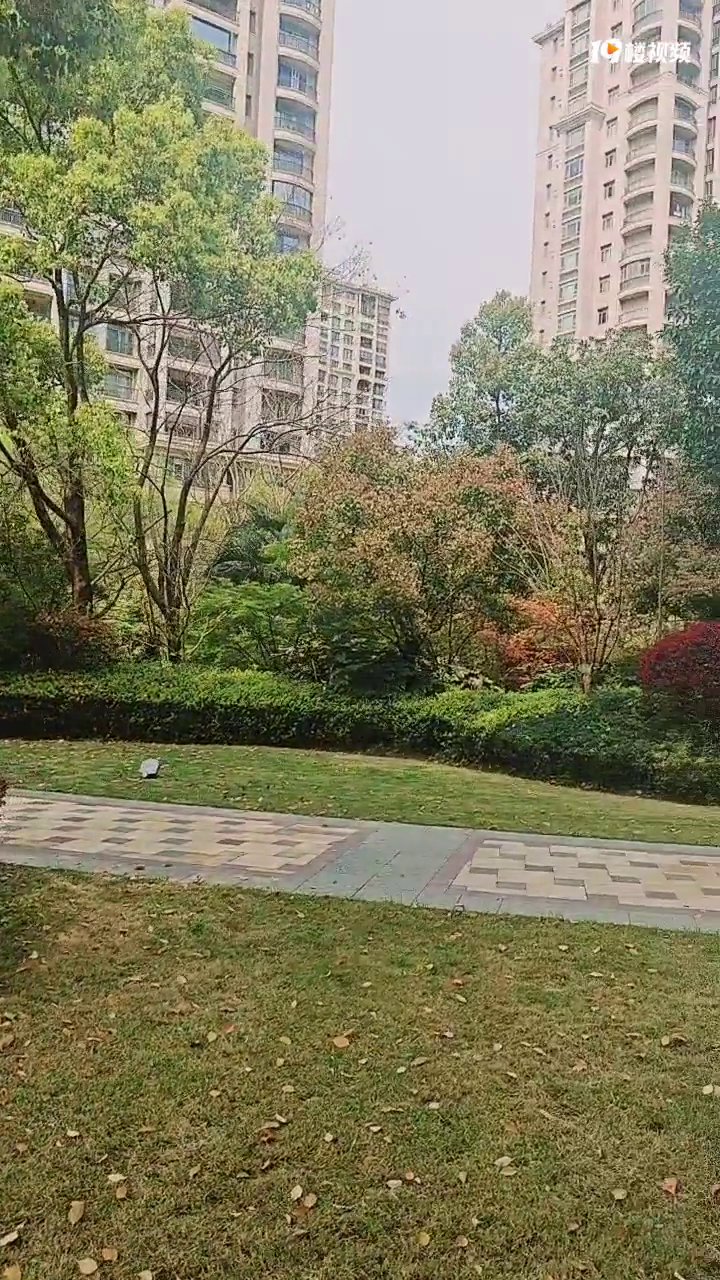看到物业在扫地、除草。阴天拍不出蓝天白云。