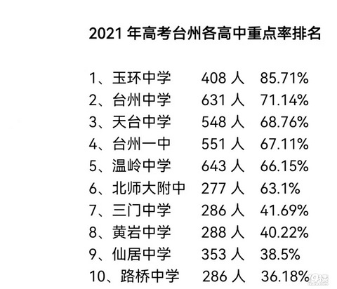 2021年高考台州各高中重点率排名