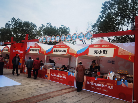 市民广场这里大红色布景,黑压压游人就是今天台州市第二届精品年货节现场写照了。