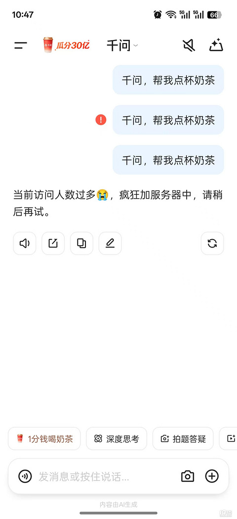 都在领千问的奶茶吗,APP点奶茶都卡了