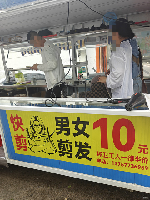 刚才在流动理发车上理发
