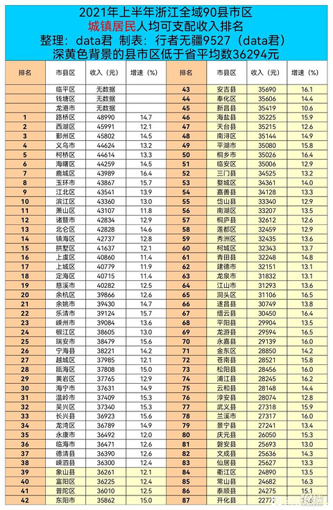 上半年台州各县市 城镇 农村 全体 人均可支配收入,拖后腿了吗