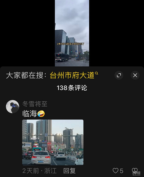 日前在抖音刷到一位常常看到的19楼用户,就点进去看了看,大致说的是台州市府大道能有宁波某路的城建就好了,结果在评论区看到一个临海人的贴图: 就是一个普普通通的住宅楼,讲真在路上看到我都不会多看一眼,可是人家都把图片贴到抖音了,那说明两个问题,第一他并没有来过椒江,第二他想象中的椒江并没有图里这样好的地方 不是,椒江的宣传做的这么差的吗?在其他各县市人的心目中椒江满大街都是老破小?连个住宅楼都没有?