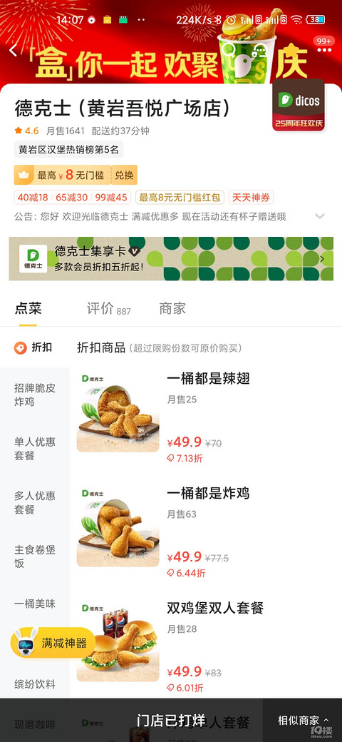 昨天去吾悦看德克士已经关门了