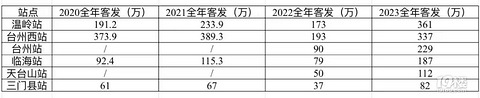 2020—2023台州境内杭台/甬台温客运站点客流发送量数据