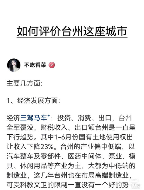 看到一个真实的关于台州的评价