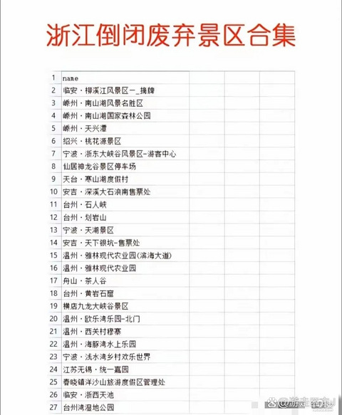 近期,网络上流传着一份关于浙江部分倒闭废弃景区的合集,引起了广泛关注。其中,浙南地区的温州、台州等地的倒闭废弃景区尤为突出。以黄岩为例,该地竟有三个景区相继倒闭废弃,分别是黄岩石窟、黄岩划岩山和黄岩石人峡。这一现象引发了人们对于景区经营困境的关注和思考。那么,这么多景区的倒闭废弃主要原因是什么呢?经过观察和分析,我们可以归纳出以下几点:1. 景色不鲜明没有特色:许多景区在开发过程中,缺乏独特的自然