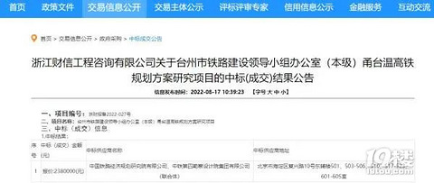 8月17日,浙江省公共资源交易服务平台挂出一则中标公告,与宁波有关。 公告为浙江财信工程咨询有限公司关于台州市铁路建设领导小组办公室(本级)甬台温高铁规划方案研究项目的中标(成交)结果。根据公告,中国铁路经济规划研究院有限公司、中铁第四勘察设计院集团有限公司联合体以238万元中标。这意味着,甬台温高铁规划项目有了新进展。 图源:国家发展改革委作为国家高速铁路网规划“八纵八横”中沿海通道的重要组成部