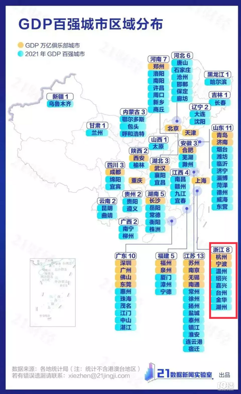 强大的浙江,我骄傲2022年全国百强(1)百强市浙江省8个。(2)百强县浙江省18个。(3)百强区浙江省14个。(4)百强镇浙江省18个。