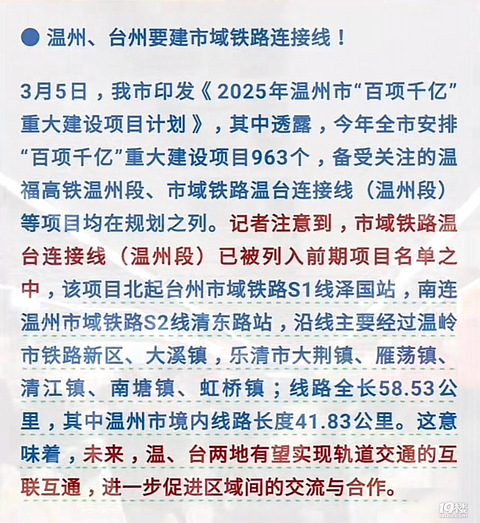 温台连接线提上日程,将连接台州s1泽国站与温州s2清东路站