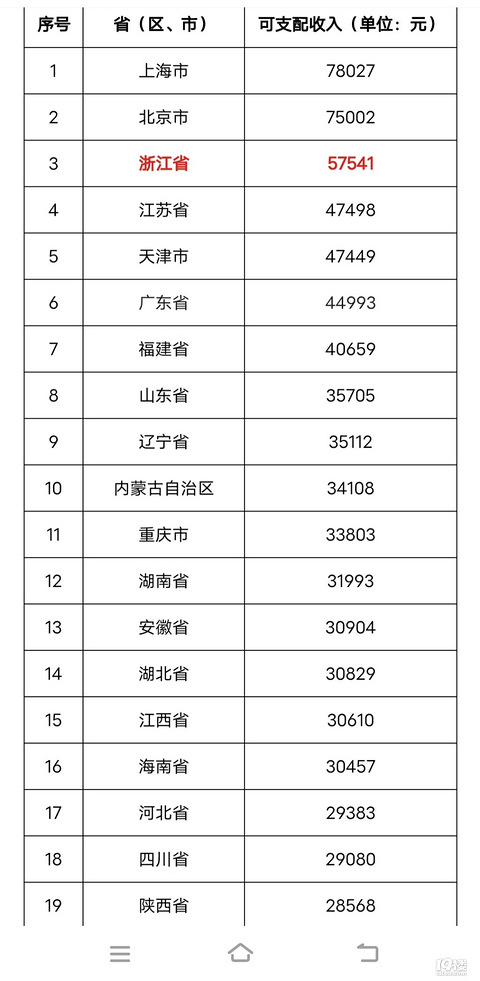 转眼间2022年已经过去一大半了大家今年年初立下的flag进度如何呢?脱单了木有?加薪了木有?赚钱赚多多了么?…… 前段时间,国家统计局公布了31省份2021年居民人均可支配收入数据快看看你今年有没有可能超过去年的数据呢 31省份2021年人均可支配收入 据国家统计局数据,2021年,浙江居民人均可支配收入57541元,稳居全国第3位。 浙江独属5万元俱乐部 数据显示,2021年浙江居民人均可支配