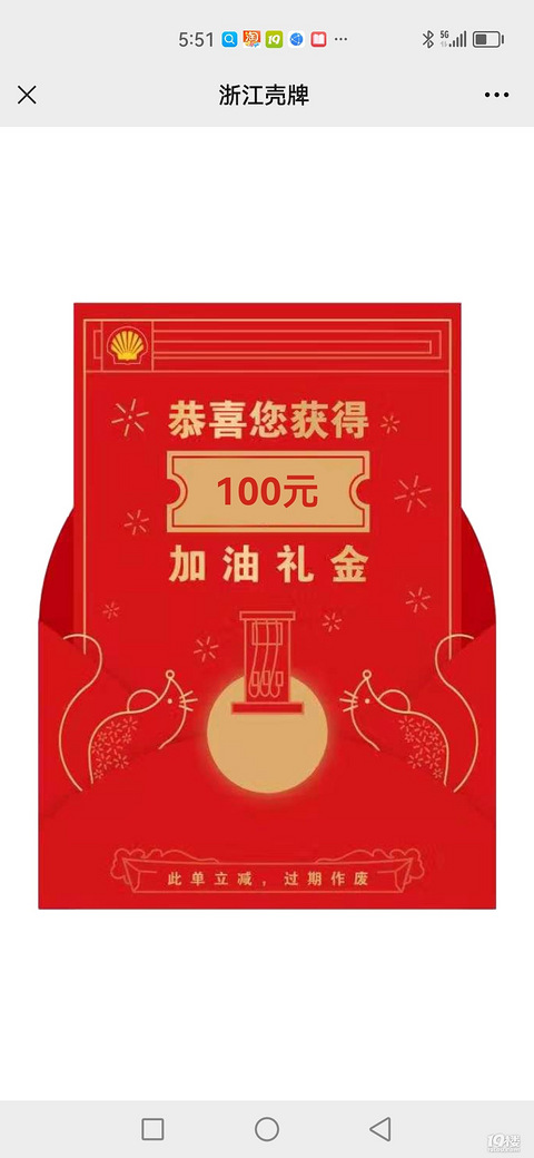 傍晚时,路过路桥商业城附近的壳牌加油站,看到,周五满220元可以抽红包,想去试试手气来着[/11害羞]就加了220的油,付款时,直接抽中了100元红包,抵用后,只付了120元,相当于5.5折, 虽然钱不多,但是很开心,哈哈哈哈哈[/11害羞][/11害羞][/11害羞]心情很好,希望最近好运多多~