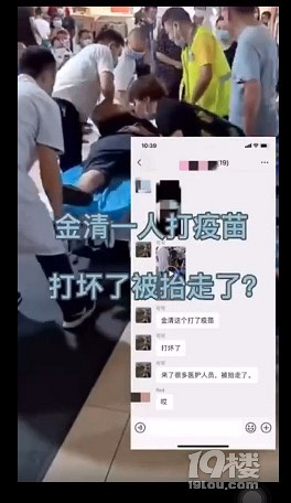 路桥金清一人因疫苗“打坏了”被抬走?谣言!7月28日,台州本地多个微信群和朋友圈传播一段一人被几名医护人员担架抬走的视频,有部分网民称金清“打了疫苗”“打坏了”“来了很多医护人员,被抬走了”。引网民热议。 事实是该人因晕针出现短暂昏厥现象,一分钟后就已好转恢复。 晕针,在针刺过程中病人突然发生头晕、目眩、心慌、恶心,甚至晕厥的现象。晕针常由于患者体质虚弱、精神紧张等以致针刺时或留针时发生此症。 警