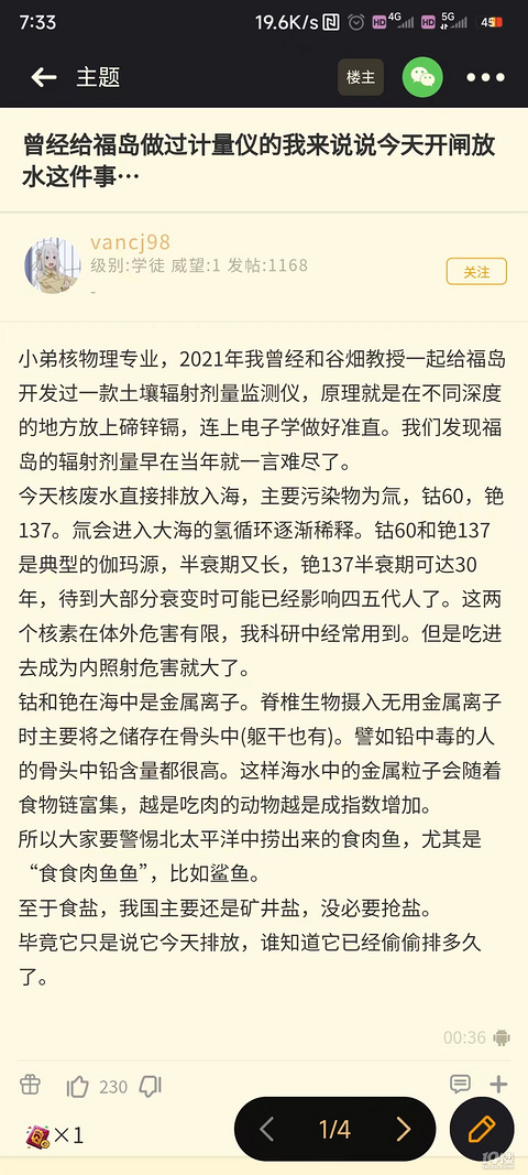 [转发]关于小日本核污水排海的影响