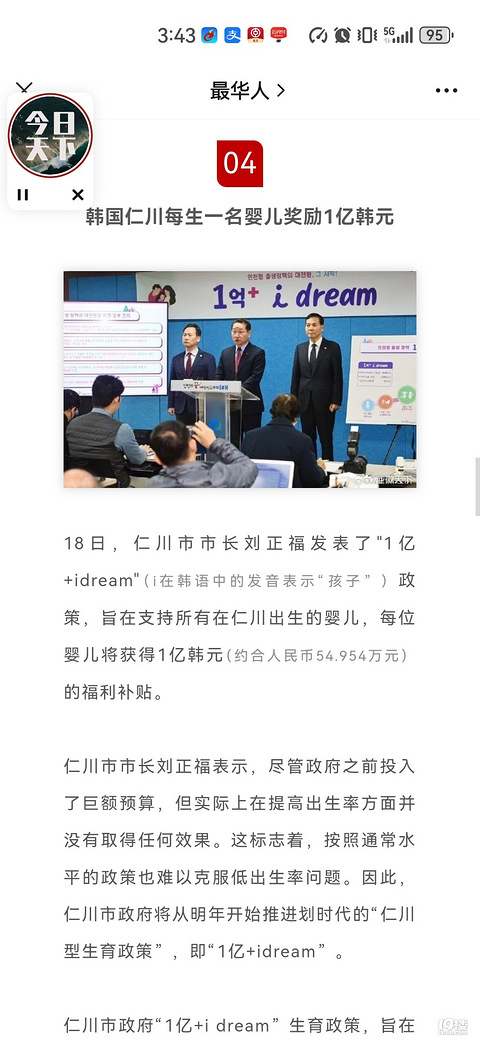 韩国真有钱生一个奖励一亿