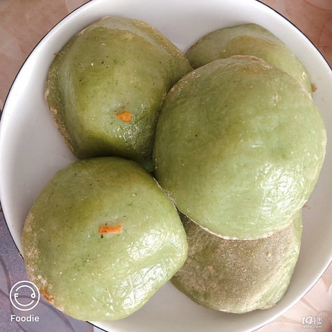 自制美食名称:青团需要的材料:艾草,糯米粉,缸豆泥,豆腐干,萝卜干,虾米难易指数:4星。(5星:非常难4星:有点难3星:一般2星:简单1星:手残党都会)制作注意点:第一步将新鲜艾草下锅煮,直到闻到苦苦的味道,汁水变黄;第二步将煮好的艾草放入料理机打碎成泥状,晾凉;第三步将糯米粉、粘米粉倒入盆中,加入白糖,少量多次加入艾草泥,搅拌,揉搓,这样就得到了一个艾草粉团;第四步将搅拌均匀后分成等份的小剂子,