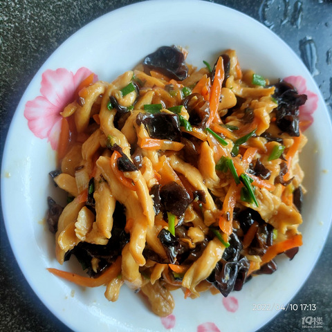 自制美食名称:鱼香肉丝需要的材料:鸡胸肉,黑木耳,胡萝卜难易指数:3星。(5星:非常难 4星:有点难 3星:一般 2星:简单 1星:手残党都会)制作注意点:汤汁调料比例是好吃的关键哦!准备好材料,黑木耳泡发洗干净切一下,胡萝卜切丝,鸡胸肉切小条,加淀粉,生抽,料酒盐拌匀,汤汁比例说一下,四勺醋,三勺白糖,两勺生抽,一勺淀粉,这个比例做出来的口感很好吃哦!热锅热油倒入调好的鸡胸肉翻炒变色,出锅锅里到