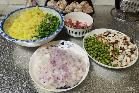 自制美食名称:扁食需要的材料:自己喜欢的蔬菜,适合切丁的(一般选择一类豆,土豆,胡萝卜,莴笋,洋葱)豆制品~豆干,猪肉等难易指数:两星 简单制作注意点:切丁要有耐心,小心手馅要冷了才能包,不然容易破,造型不好看煎的时候要小火焖,先油后洒水,有条件最后撒点熟芝麻,葱花1炒馅 锅烧热油,洋葱,香菇炒香,再放入猪肉,豆干然后放入土豆,豆角,豆仁,加入料酒和盐,小火焖至少十分钟,土豆,豆类得熟透最后放入莴