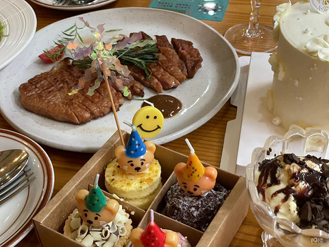 这家店真的是探店的“达人”比食客还多记得和小伙伴是大中午过去的,以为各种打卡贴一堆会有很多人,特地致电了老板询问结果过去,最期待的位置被美食探店的占领拍照,我们吃了多久,对面就拍了多久,各种打光找角度感觉挺汗颜的,一波走了一波又来,用餐的一个半小时里,至少真正吃饭吃饭的就两桌,两桌包括我们然后上菜的速度不块,有一份单点的菜,烤翅食材不好,老板帮忙退款了 菜式的整体都还过关,向拍打卡的照片是蛮挑位置