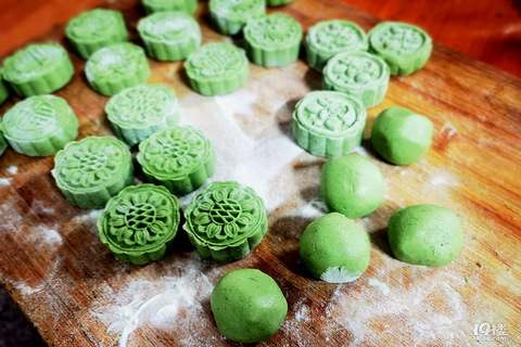 自制美食名称:清饼需要的材料:艾草,糯米粉,面粉,油,豆沙或汤圆馅,粽叶……难易指数: 2星:简单制作注意点:和面放点油,不容易沾,模具好看就有颜值,一般淘宝买的冰皮月饼模具都还不错!气上来之后,大火10分钟即可,揭盖后,用扇子扇下更光亮!