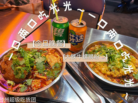 在现代天地开了一家螺蛳粉,到门口就能闻到螺蛳粉的臭臭的味道,这个可能是我在台州吃到过的最臭的螺蛳粉了! 今天带你们看看这家-大铁牛家螺蛳粉。 个人感觉他家螺狮粉分量很足,满满的一大盆,斗音上9.9一份炸蛋螺狮粉,18.8单人猪手螺狮粉。 位置:第一生活广场103号,门面一间,招牌很大很好找。 停车位:可以停在鑫泰街附近,走一下。 环境:店里小二层,霓虹灯广告牌,金属材质的桌椅,一个个不锈钢碗还