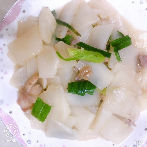 自制美食名称:生炒盘菜需要的材料:盘菜,五花肉,大蒜叶难易指数:3星。(5星:非常难4星:有点难3星:一般2星:简单1星:手残党都会)制作注意点:盘菜也叫大头菜,其貌不扬,价廉物美,一个2斤重的盘菜1.5元,可以烧3大盘。非常不起眼的蔬菜,确很嫩很好吃。盘菜有两种做法一种是生炒盘菜,用生粉作勾芡,用大蒜叶作辅料,烧熟的盘菜绿白相间,色彩鲜艳,加上五花肉,一盘热气腾腾的盘菜端上桌,色、香、味俱佳,令