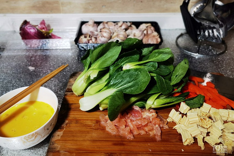 自制美食名称:荞麦面需要的材料:鸡蛋,鸡胸肉,青菜,腐竹,胡萝卜,荞麦面!当时家里只有这些,不然菇类少不了难易指数:两星 简单制作注意点:菜叶,菜根分开放,放面后再放菜叶鸡胸肉可以提前腌制一下,比较入味,用淀粉可以嫩一些如果是菠菜,提前焯水备用!1准备好各种配菜2鸡蛋摊好,弄碎备用3胡萝卜,鸡胸肉放油里炒,再加入菜根,盐,酒4加入鸡蛋翻炒,再加入水5煮沸后放适量荞麦面,最后加菜叶