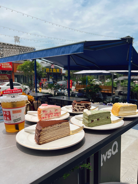 店名:QVSQ榴莲千层地址:椒江平桥葭南小区3-1、2号浓郁的克莱因蓝色调,看起来特别的鲜艳,小清新感觉显著,无论打卡拍照都相当的出片,随手拍都是大片的既视感。主打美食,以千层蛋糕为主,口味种类相当丰富,选择性也很广。金枕头榴莲千层,颜值杠杠的在线,浓郁的榴莲香,招人喜欢。榴莲品质也相当的好,吃起来口感超爽,爱了~提拉米苏:每个人想必都不能拒绝提拉米苏的诱惑吧,软软嫩嫩的特好吃。樱花千层:每个少女