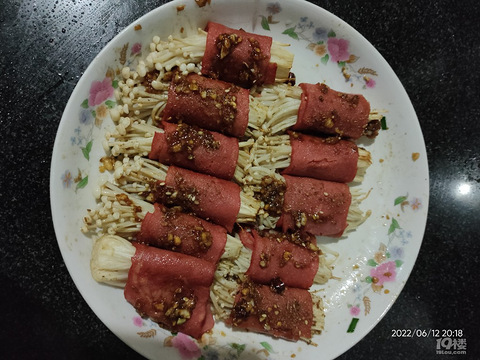 自制美食名称:金针菇培根卷需要的材料:金针菇,培根难易指数:2星。(5星:非常难 4星:有点难 3星:一般 2星:简单 1星:手残党都会)制作注意点:培根卷金针菇最好用牙签固定好,这样好看,我自己吃,没扎牙签,有点散开了一包金针菇,半斤培根切七八厘米长的段金针菇切了根部洗干净,用培根卷起来放入空气炸锅,喷油,180°六分钟然后翻面再六分钟,做烤茄子多余的蒜酱,涂上去再两分钟可以吃了哦!没扎牙签翻面