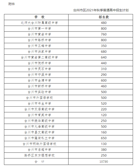 定了!2021台州市区高中招生10790人!椒江区:3940人