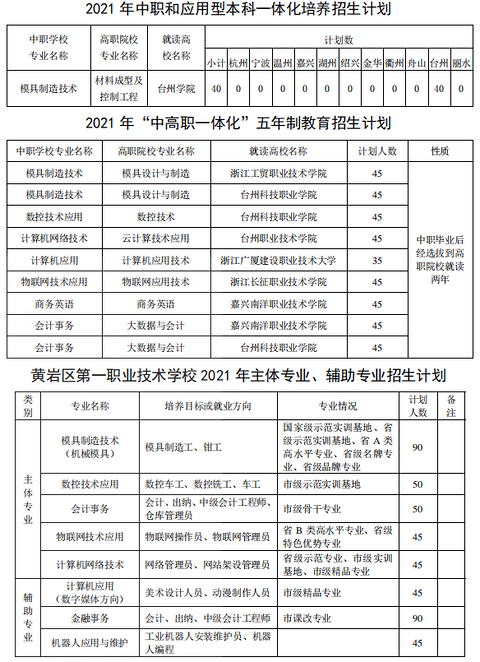 台州市中职学校2021招生计划公布!中本一体化,五年制学前教育