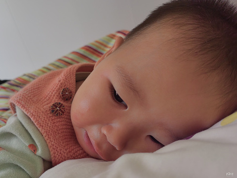 孩子刚三个月大,上午刚醒来的时候情绪比较好,一直笑。到下午3