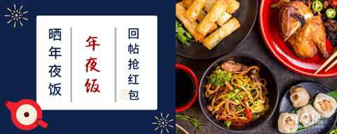 马上又是新年,相信很多小伙伴已经在准备年货了年夜饭:这一年当中最重要 最有仪式感的一餐无论是饭店里的丰盛大餐 还是家里面的合家饭无不例外 都是充满意义的一次团圆快来晒出你的年夜饭可以是公司年饭、朋友年末聚餐、大年三十的年夜饭等等请说明是哪种类型回帖晒出来,斑斑准备了50元红包用APP按规则回帖后即可获取红包哦 回帖晒出你的年夜饭(可以是公司年饭、朋友年末聚餐、大年三十的年夜饭等等,请说明是哪种类