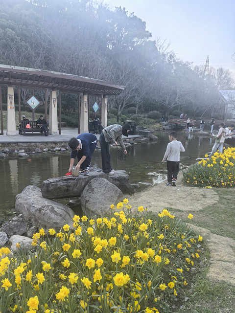 男孩子都喜欢捕鱼,拿着网兜,在公园里里的河道里,好像玩的不亦乐乎,女儿也看看别人捕鱼,让我也买了一个网兜,我生怕她掉到河里去。只可惜这边的小河都不太干净。 一个个都拿着网