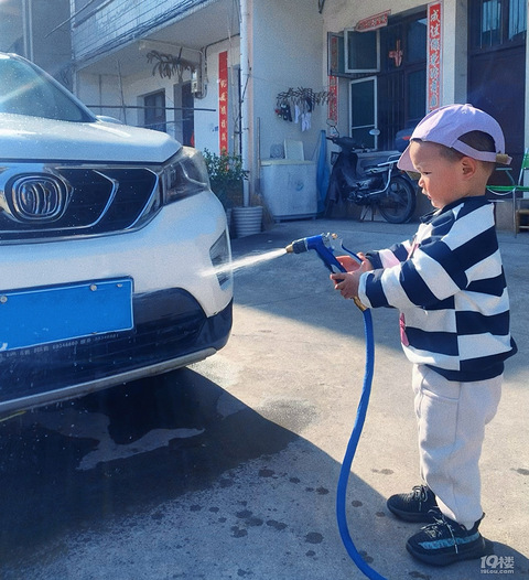 闲来无事,想着把车子洗了先,小朋友看着我提桶,拿工具,装手龙头的。躁动的心一下子就按耐不住。 得嘞,正巧外婆不在家,就让他随意玩把!否则,连带我都得家法伺候啦[ej=1F602] 未避免泡沫这些甩到眼睛,就让他玩清水直接喷,想着万一打湿了衣服,我给他换了便是!刚开始的时候,老老实实用力玩水,喷车车,后来玩法升级了,枪口对准了我[ej=1F623]欠揍型人格一下子就展现出来,好家伙,追着我使劲喷,哎