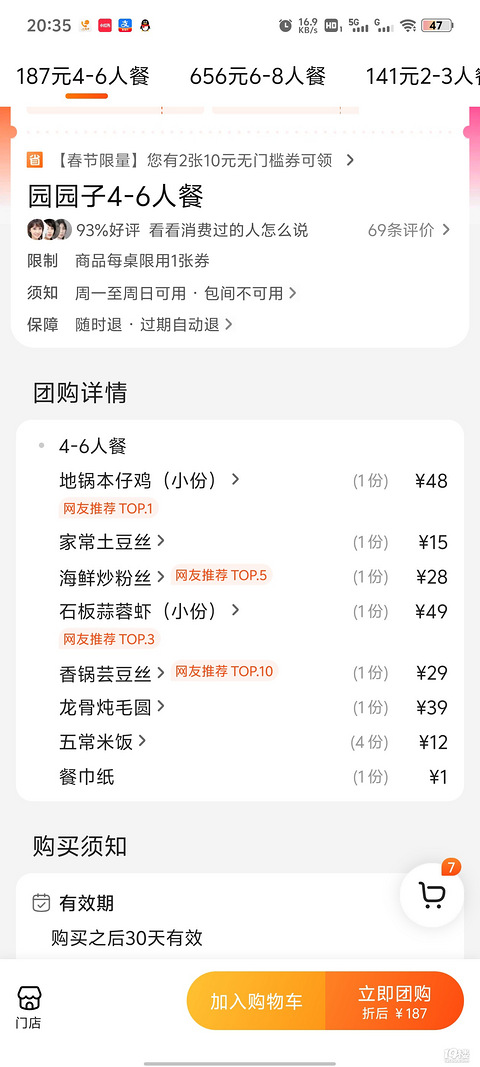 过年旅行就是去别人待腻的地方去看看下午我们要去宁波奉化的应梦里。中午先去找吃的,去的万达广场的小菜园8个人点了套餐,再另外加了几个菜,一共3百不到的价格,大家吃得饱饱的,真划算啊[/11大笑][/11大笑]