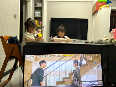 她们俩认真写作业。 我偷偷看无声的电视剧,假装自己在工作,很忙的样子[ej=1F602]每天晚上都能这么愉快,我要乐开花。