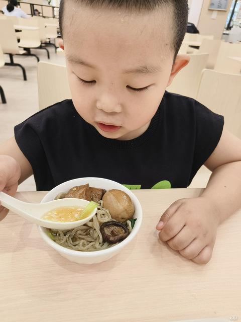 带他来食堂吃饭,还是选择了面条卤蛋。小碗不够,换大碗