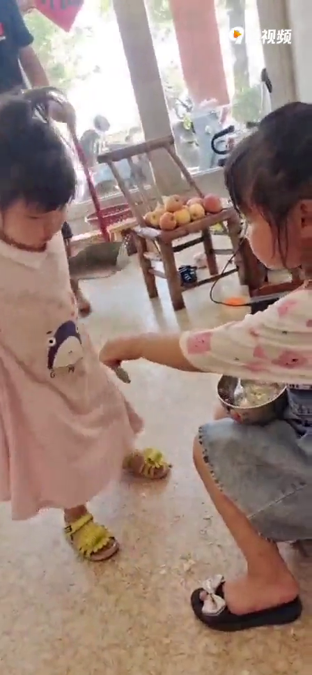 天气太热,妹妹的食欲不振。大家都吃好了,她端着碗跑到门口放小板凳上吃,刚爸爸说这口碗不用看肯定要碎。话刚说完,咣当一声,碗破两半了。妹妹站旁边手足无措,小声说爸爸,碗破了。爸爸说不理她看她们怎么处理。最后姐姐说过来,我还有。我们分分吃吧。你一口,我一口干完姐姐吃不了的半碗饭。地上一地米饭粒,养只小鸡都可以了。
