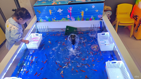 不下雨就是闷啊,这样天气真的只能带娃去商场了。充了卡,25块钱可以玩一天。捞鱼地方居然还有大蛙。