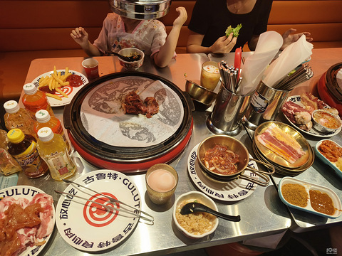 晚上一帮人说去宝龙吃古鲁特自助餐。我们5大5小,一共十个人。小蒋这身高已经不是免费的了[/11笑哭][/11笑哭]。进去之后我们就拿拿拿。小朋友们最爱的薯条,蛋挞,鸡米花自由了。哈哈哈,孩子们看到这些个个眼睛都亮了[/11偷笑]。小蒋还说:“这大餐随便拿,这么多好吃的,我们要疯狂扫荡才行”[/11大笑][/11大笑][/11大笑]最后呢,也不知道有没有吃回本。反正五花肉,牛肉吃的是最多了。但是呢,
